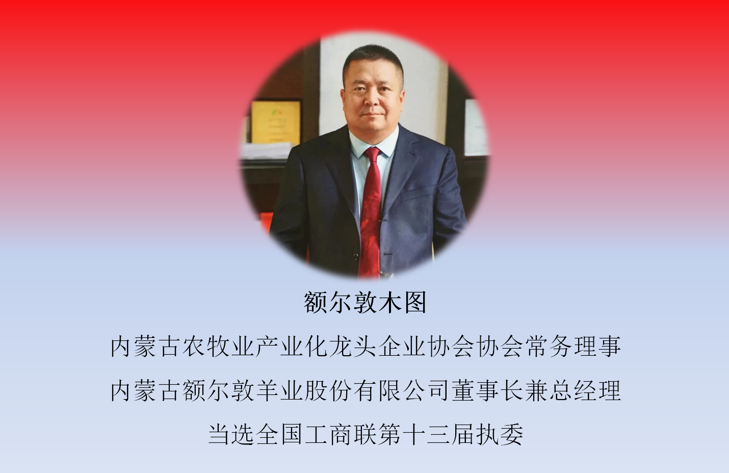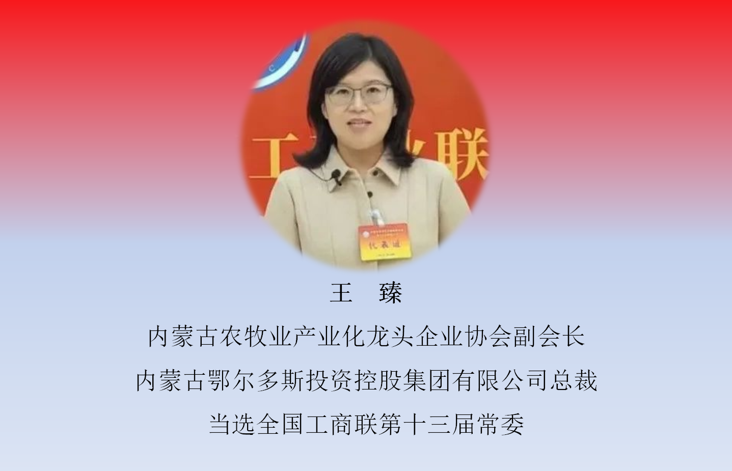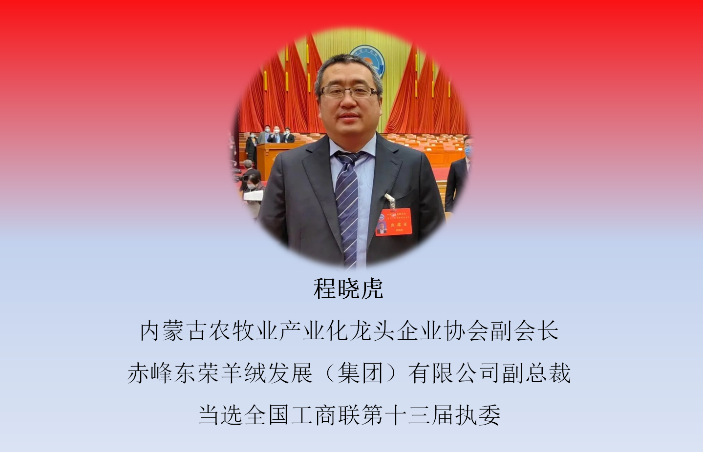 12月11日,中國工商業(yè)聯(lián)合會第十三次全國代表大會在北京召開,大會選舉產(chǎn)生了中華全國工商業(yè)聯(lián)合會第十三屆執(zhí)行委員會。內(nèi)蒙古農(nóng)牧業(yè)產(chǎn)業(yè)化龍頭企業(yè)協(xié)會4家會員單位負責(zé)人當(dāng)選新一屆常委和執(zhí)委。